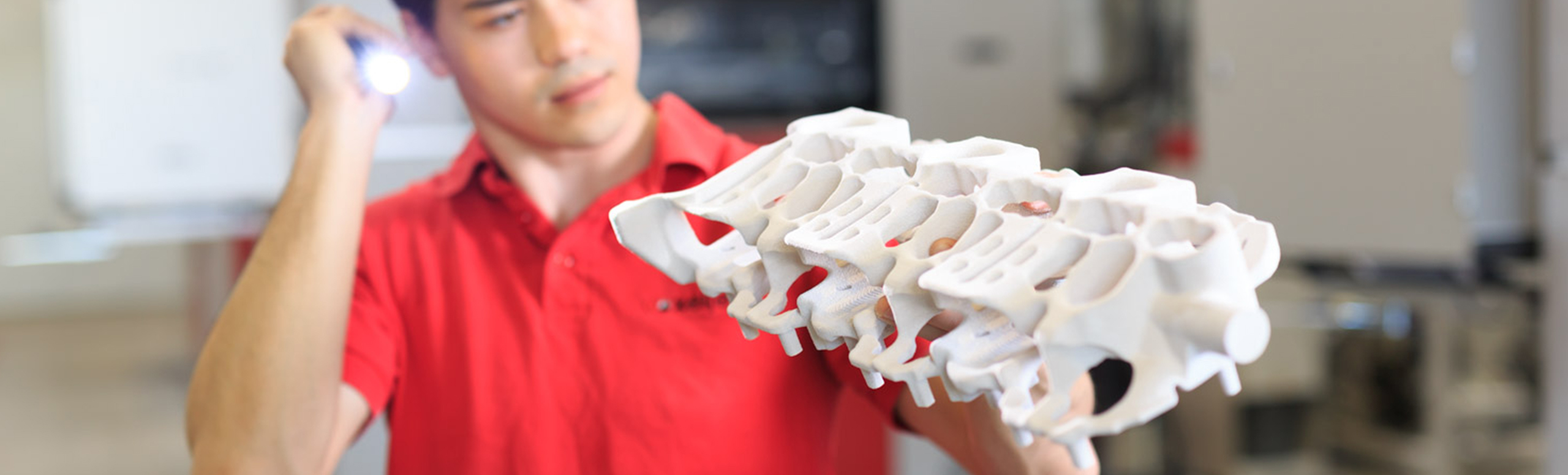 Mit dem voxeljet Binder Jetting Verfahren können werkzeuglos keramische Strukturen in komplexen geometrischen Strukturen mit neuartigen Eigenschaften hergestellt werden. Zum Beispiel leichte poröse, bioaktive Keramikstrukturen.