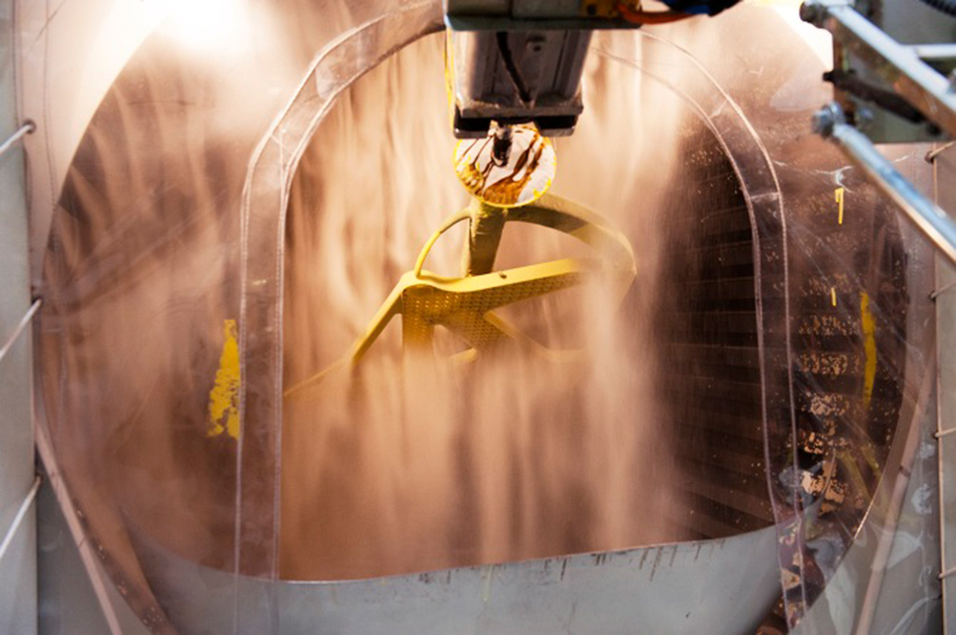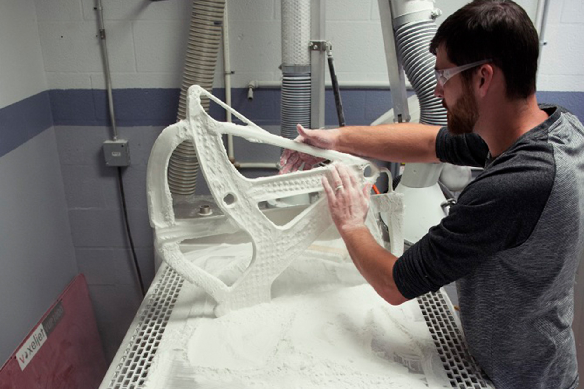 Um ihre Vision zu realisieren, arbeiteten die Forscher mit der renommierten Feinguss-Gießerei Aristo Cast in Almont, Michigan, zusammen, die über einen VX1000 3D-Drucker von voxeljet verfügt. Dieser Drucker ermöglicht die Herstellung großer Modelle aus Polymethylmethacrylat (PMMA), einem Kunststoff, der sich hervorragend für das Feingussverfahren eignet. Beim sogenannten Binder-Jetting-Verfahren wird das Pulver durch einen flüssigen Binder verklebt und Schicht für Schicht zum Modell aufgebaut.