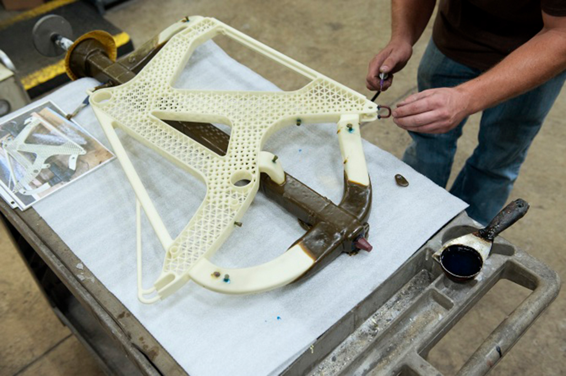 Im Pier 9, dem 27.000 Quadratmeter großen Technologiezentrum von Autodesk in San Francisco, arbeiteten Andreas Bastian und Andy Harris von der Autodesk Advanced Consulting Group gemeinsam an einem neuartigen Sitzrahmen für Flugzeuge. Ihr Ziel war es, das Gewicht der Sitzstruktur zu reduzieren, ohne dabei die sicherheitsrelevanten Anforderungen an Stabilität zu gefährden. Die Optimierung des Sitzrahmens erfolgte digital mithilfe der Netfabb-Software von Autodesk. Die stabile Grundstruktur des Rahmens wurde durch eine Gitterstruktur ersetzt, wodurch sowohl Material als auch Gewicht eingespart werden konnten. Diese komplexe Struktur stellte jedoch besondere Anforderungen an die Herstellbarkeit, die letztlich mit Hilfe der additiven Fertigung gemeistert wurden.