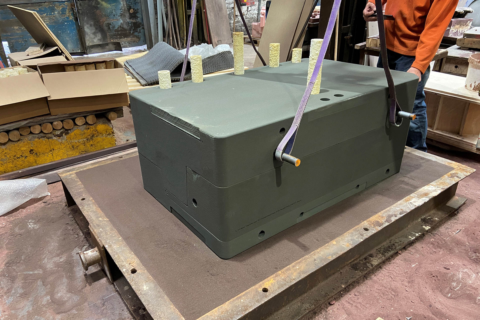 Zwar bestand bei der 3D-gedruckten Form auch das Risiko, dass der Kern aufgrund des Gießdrucks, wegbrechen und aufschwimmen würde, aber indem Boro Aussparungen für Bolzenschraubverbindungen integrierte, konnte der Kern und die Form mithilfe von Bolzen fixiert werden.
