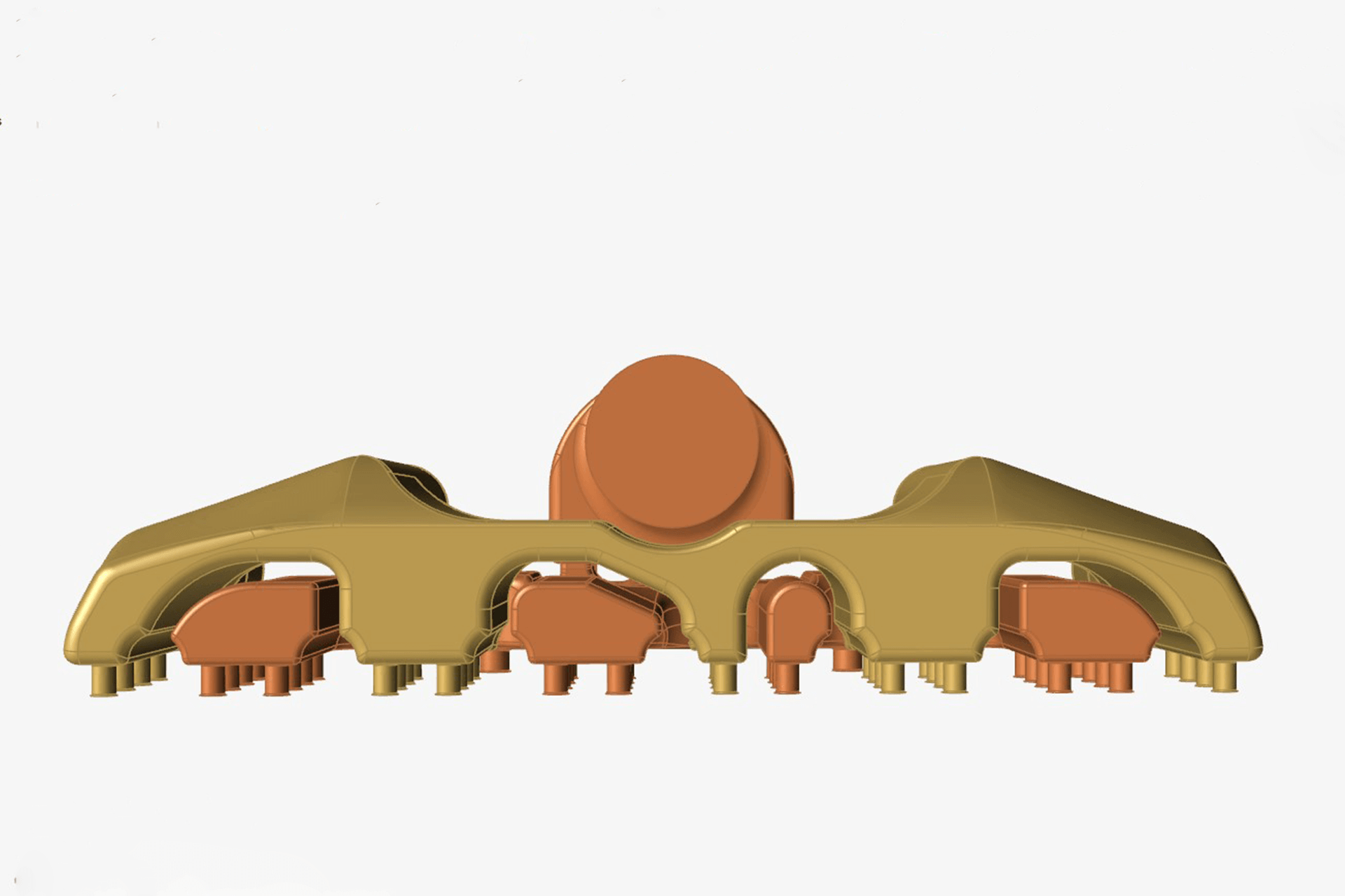 Das Originalteil enthält nämlich eine Reihe von Löchern (insgesamt 56), durch die während des Betriebes der Dampf geleitet wird und die Herstellung mittels Sandguss stark verkomplizieren. Die größte Herausforderung war der Kern, der in die Form eingesetzt wird, um die Hohlräume bzw. die Löcher ins Gussteil zu integrieren. Ursprünglich wurde der Kern durch Klammern, Bolzen und die Verwendung von Kernstopfen gestützt, damit der Kern während des Gusses statisch an seinem Platz verharrt. Jedoch bestand ein erhebliches Risiko, dass sich der Kern beim Abguss bewegt. Ungleich dicke und dünne Wandabschnitte und eine zusätzliche nachgeschaltete mechanische Bearbeitung wären das Resultat. Eine Inspektion des Originalteils ergab, dass dies die Ursache für die örtliche Ausdünnung gewesen sein könnte, die dazu führte, dass das ursprüngliche Teil aus dem Betrieb genommen wurde.
