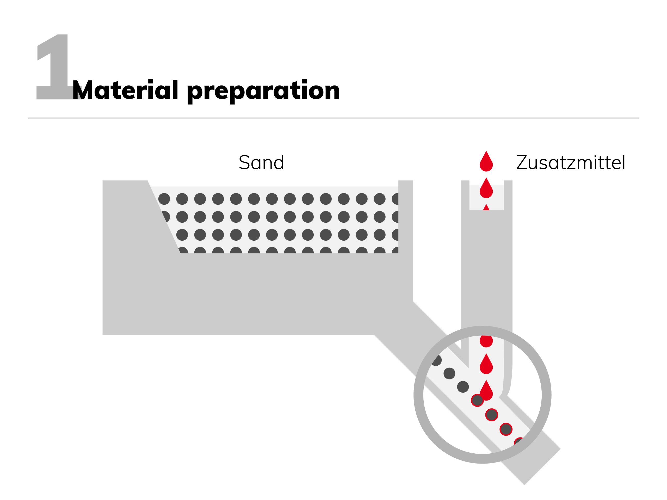 Kernstück der Linie sind fünf voxeljet VX1300-X 3D-Drucksysteme, die im Parallelbetrieb eine außergewöhnlich hohe Produktivität ermöglichen. Der Druckprozess basiert auf selektivem Binder-Jetting, bei dem dünne Sandschichten mittels eines bidirektionalen Beschichtungs- und Drucksystems in kürzester Zeit mit einem anorganischen Binder in einer Jobbox bedruckt werden. Die Schichtzeit liegt unter acht Sekunden – ein entscheidender Faktor für die Serienfähigkeit.