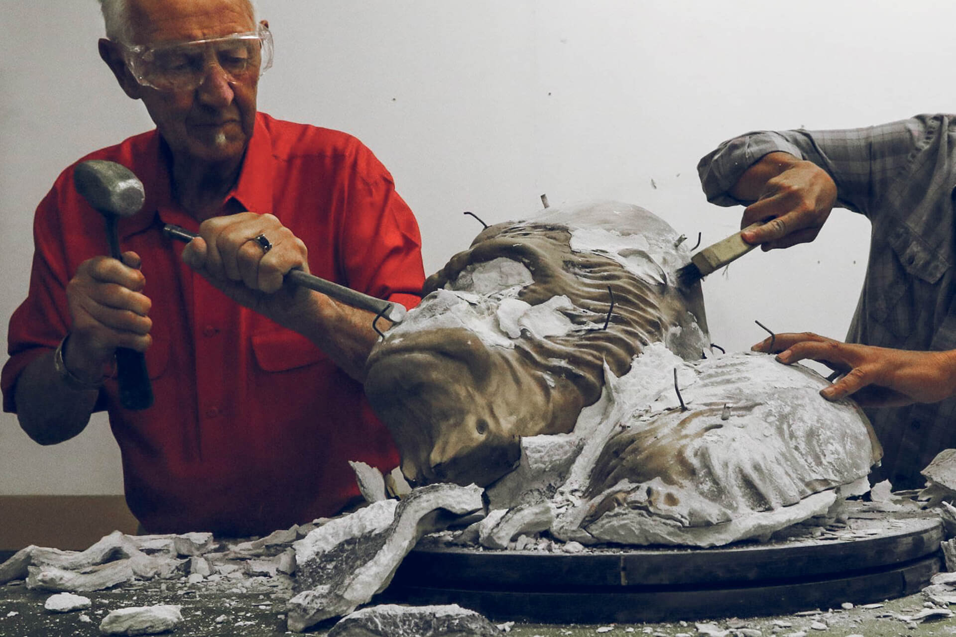 Daraufhin brachten sie Keramikschalen für den Feinguss mit Bronze auf und gossen die einzelnen Segmente in Bronze-Legierung. Während des Gusses betteten die Künstler und Gießer in jedes Bronzestück sogar noch eine kleine Menge von Ivans Asche. Zum Abschluss schweißten die Gießer die einzelnen Teile der Statue zusammen. Das fertiggestellte Denkmal ist 183 Zentimeter groß und wiegt fast 280 Kilogramm.