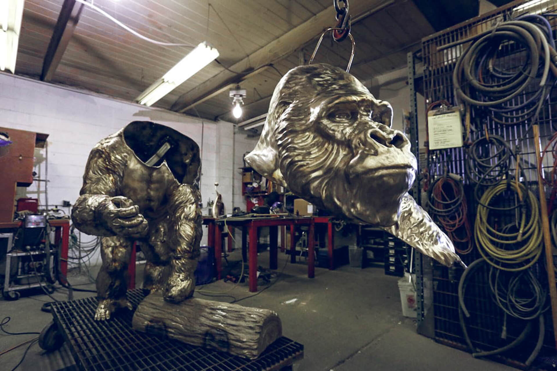 Da die Statue in Lebensgröße umgesetzt werden sollte, war die digitale Datei von Ivan ebenfalls ein Schwergewicht. Wegen der enormen Größe der Gorillastatue musste das 3D-File in mehreren Einzelteilen gedruckt werden, auf dem universal 3D-Drucker VX1000 in PMMA-Kunststoff. Nachdem die Einzelteile gedruckt und versäubert waren, tauchten die Druckspezialisten von Form 3D Foundry diese in Wachs um die Oberfläche zu versiegeln und zu glätten.