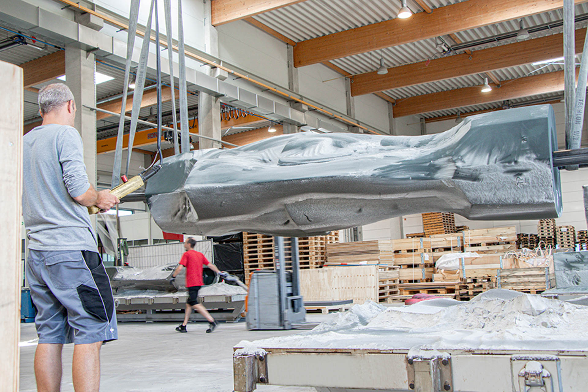 Am Anfang standen drei kleine Gips-Plastiken des Künstlers zur Verfügung, die hochskaliert und über den 3D-Sanddruck hergestellt werden sollten. Als Zielgröße wurden 2,8 Meter definiert.