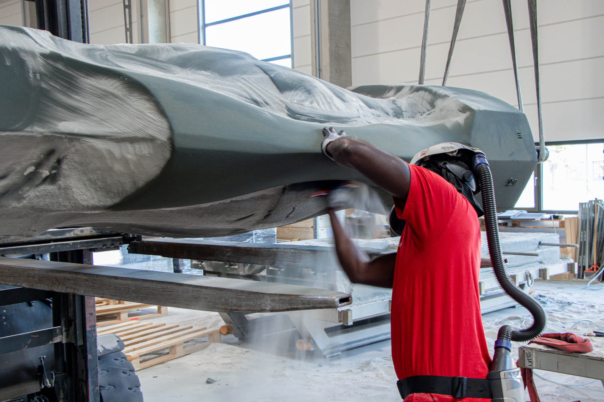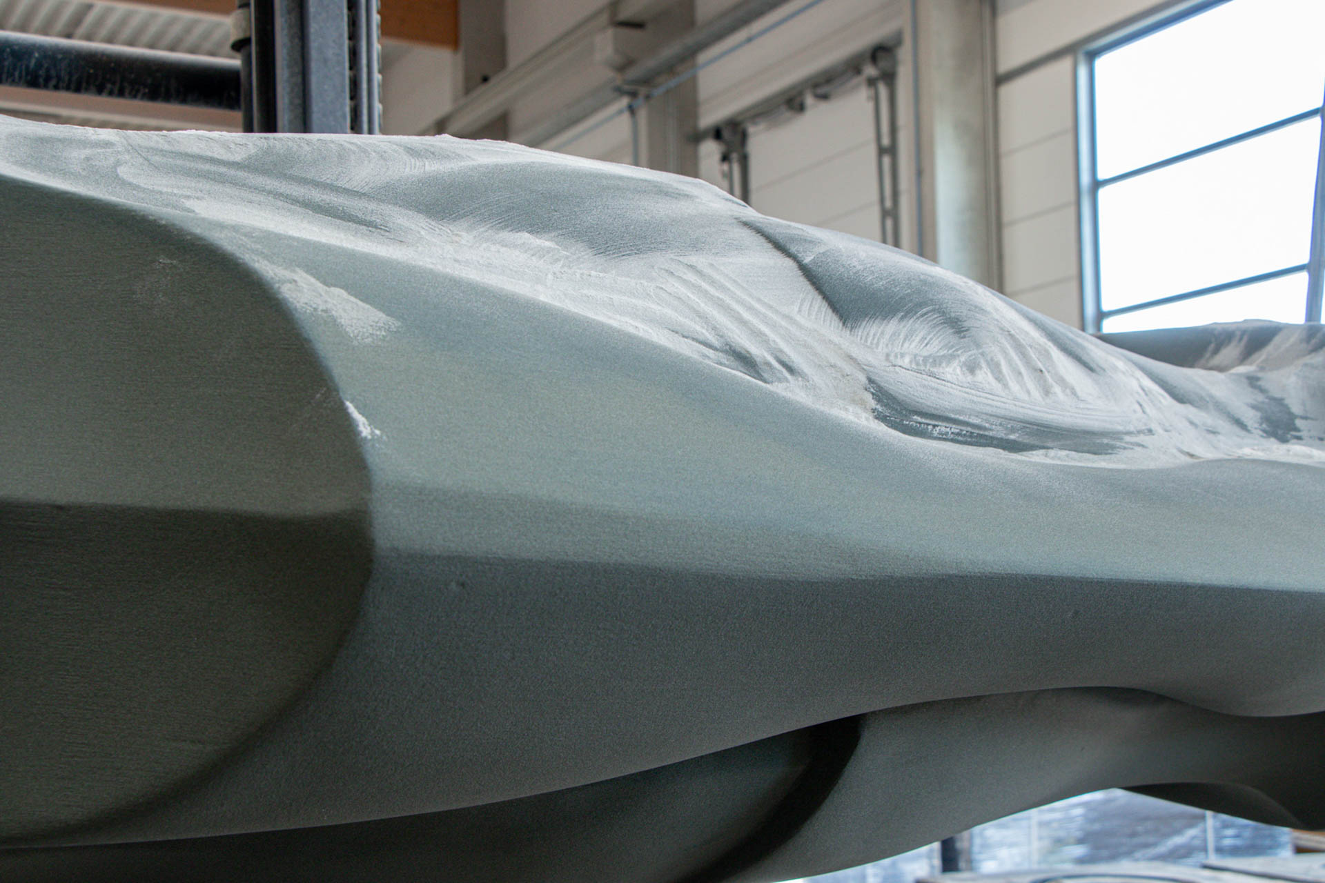 Im Fokus stand dabei natürlich die Plastiken auf die Zielgröße von 2,8 Metern zu skalieren. Darüber hinaus integrierten die Experten von WESTCAM aber auch schon direkt verschiedene Funktionalitäten in die 3D-Modelle. Darunter Aussparungen für die Säulenstütze und die Montagebewehrung für die spätere Installation. Da von Anfang an klar war, dass die Skulpturen über den 3D-Sanddruck hergestellt werden sollten, waren hier keine geometrischen Grenzen gesetzt.