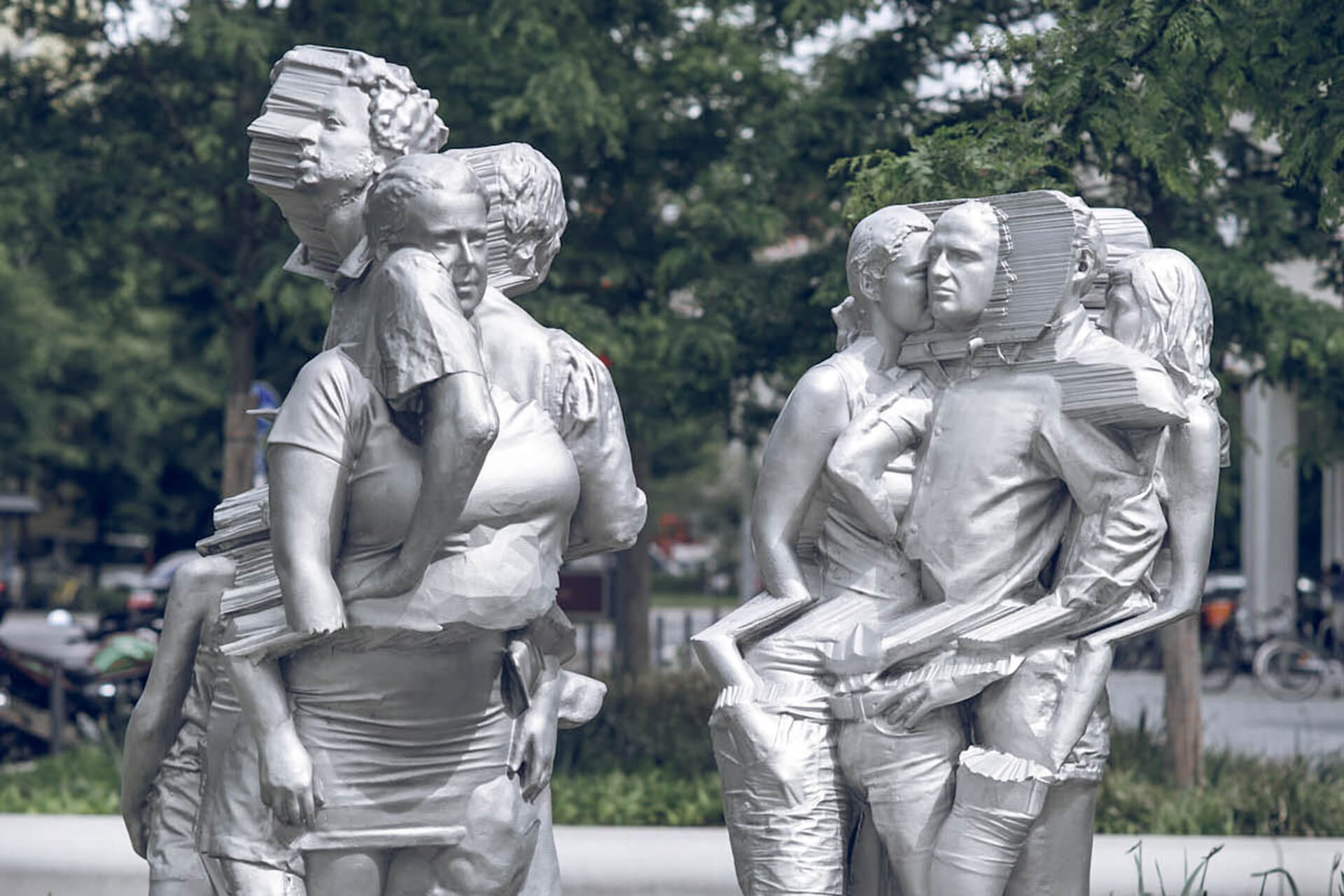 Mit der lebensgroßen Skulpturengruppe „Westpark Clouds“ erschufen Fabian Hesse und Mitra Wakil für das Wohnquartier im Münchner Westpark eine künstlerische Arbeit im öffentlichen Raum. Westpark Clouds zeigt eine zweiteilige Figurengruppe, entwickelt aus den manipulierten und bearbeiteten 3D-Scans der neu hinzugezogenen Bewohnern.