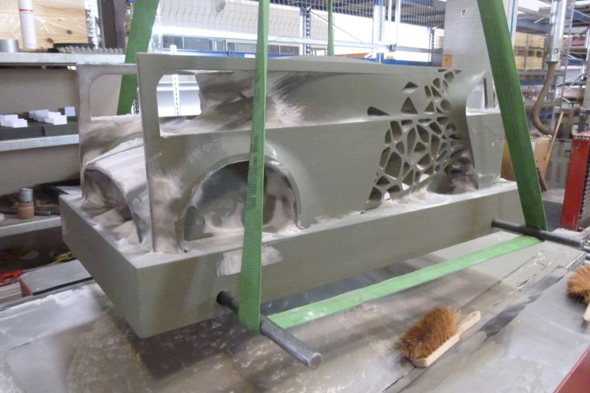 Ohne physisches Modell hätte die Arbeit viel von ihrer Überzeugungskraft verloren. Deshalb entschloss sich voxeljet-Geschäftsführer Dr. Ingo Ederer auf Anfrage spontan zur Förderung des Projektes: „Für die Aufgabenstellung, ein Fahrzeugmodell im Maßstab 1:4 detailgetreu abzubilden, ist unsere Binder Jetting 3D-Technologie tatsächlich wie geschaffen. Außerdem verfügen wir über die technischen Möglichkeiten, ein mit den Dimensionen 1000 x 450 x 350 Millimeter doch relativ großes Modell herstellen zu können. An unserer Unterstützung sollte das Vorhaben jedenfalls nicht scheitern.”