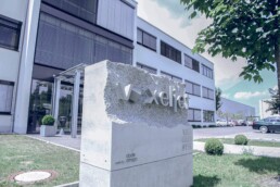 Das Resultat der ersten Versuche im Betonguss kann sich sehen lassen. Durch modernste Binder Jetting 3D-Druck-Technologie und hohe Handwerkskunst hat 3D-Druckerhersteller voxeljet die Horizonte des traditionellen Gusses erweitert. „Was in der Architektur bis vor ein paar Jahren noch undenkbar gewesen wäre, ist nun durch eine Kombination von 3D-Druck und unserem eigens entwickelten UHPC-Beton möglich“, ergänzt Betonguss-Spezialist Keel. Mit entsprechender Nachbehandlung und je nach Anwendungsfall können die 3D-gedruckten Schalungslemente auch durchaus mehrfach verwendet werden um bspw. auch die Herstellung von komplexen Betonfertigteilen zu ermöglichen. Der fertige Stein mit dem voxeljet-Logo schmückt nun den Eingang des voxeljet-Verwaltungsgebäudes in Friedberg.