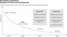 Im Moment konkurriert der 3D-Metalldruck, wie beispielsweise das Direct Metal Laser Sintering (DMLS), mit Gießereien in einem vergleichsweise kleinen Segment. Die Bauräume der DMLS Anlagen eignen sich in erster Linie für kleinere Bauteile. Und 3D-gedruckte Bauteile benötigen etwa in der Luftfahrt eine zeitaufwändige Zertifizierung, die der Metallguss seit Jahrzehnten längst hat. Zudem ist der direkte 3D-Metalldruck vergleichsweise teuer. Das liegt nicht nur an den hohen Kosten für das Metallpulver, sondern auch an den hohen Anschaffungskosten für die 3D-Drucker und den vergleichsweise langsamen Baugeschwindigkeiten.