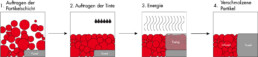 Beim HSS Prozess handelt es sich um eine Binder Jetting Technologie, bei der ein Pulvermaterial – in diesem Fall Polyamid 12 – selektiv verschmolzen wird. Dazu appliziert der Beschichter haarfeine Schichten Pulvermaterial auf der Bauplattform, die anschließend selektiv vom Druckkopf mit einer Infrarotlicht absorbierenden Tinte benetzt werden. Durch die Bestrahlung der Schichten mit Infrarotlicht verschmelzen die mit Tinte eingefärbten Bauteilpartien, während das ungefärbte Pulver lose bleibt. Diese Schritte wiederholen sich, bis das Bauteil aufgebaut ist. In der Praxis werden meist mehrere Bauteile in einer einzigen Jobbox produziert, um höchste Effizienz in der Produktion zu erreichen.