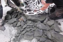 Für die Herstellung des großzügig dimensionierten Stuhls mit seinem komplexen Rochendesign waren insgesamt fünf Sandformteile erforderlich, die allesamt im Dienstleistungszentrum von voxeljet entstanden. Das größte Formteil hatte Dimensionen von 1.105 x 713 x 382 mm, was die Hochleistungsdrucker von voxeljet aber spielerisch bewältigen.