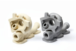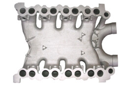 Klassischerweise sitzt eine Motor-Sauganlage auf dem Motorblock eines Fahrzeuges auf. Ihre Aufgabe ist, es Umgebungsluft anzusaugen und in die Zylinder des Motors zu leiten. Die Leistung und Effizienz dieses Motors hängt stark von der Qualität der Luftbefüllung ab. In diese, Fall ging es um die Neuentwicklung einer Sauganlage für einen 8-Zylindrigen Rennmotor. Das Problem lag zunächst in den vielen Hinterschneidungen und benötigten Kernen, die für einen Abguss hätten, benötigt werden müssen. Durch den Einsatz des Binder Jetting 3D-Drucks konnte die Form jedoch in fünf verschiedene Teile aufgebrochen werden. Ein Oberkasten, ein Unterkasten und lediglich drei Kerne. Nach erfolgreichem Testen wurde das Design finalisiert und freigegeben. Heute entspricht das getestete Formdesign einer Serienlösung.
