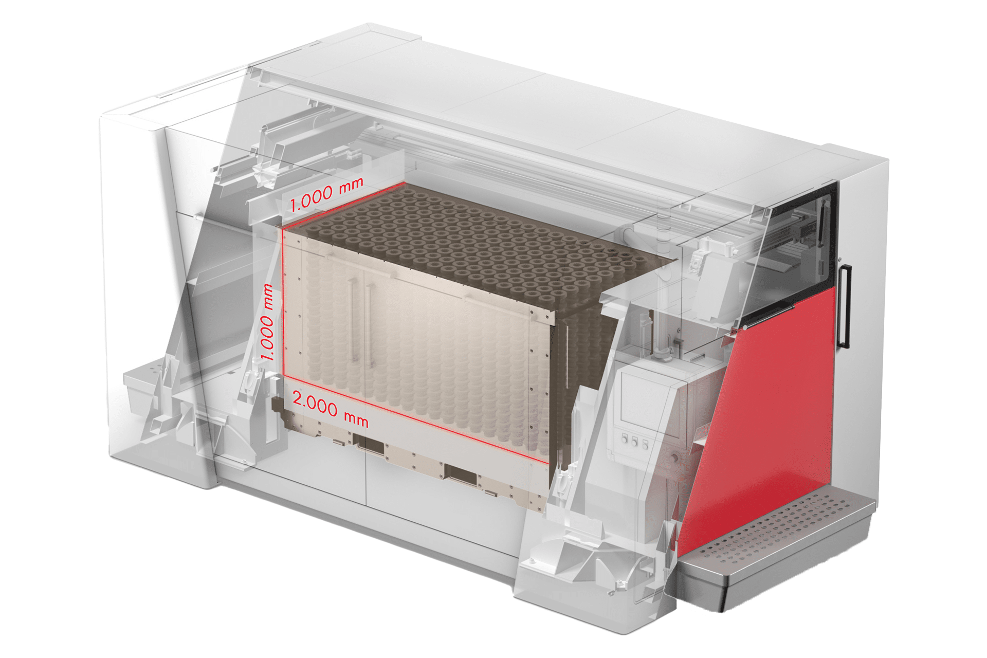 Mit einem Bauraum von 2000 x 1000 x 1000 mm ist die VX2000 der ideale 3D-Drucker für kleine und mittlere Serien. Auch bei großen Formen und Bauteilen.